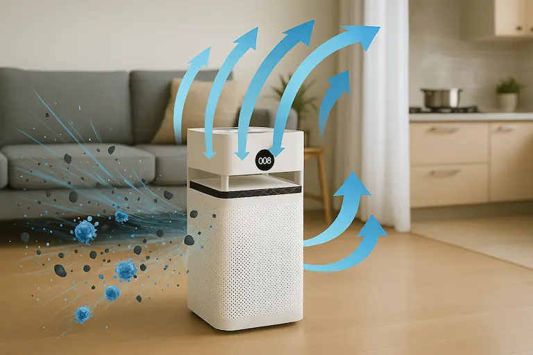 Un purificador doméstico es, ante todo, un sistema de filtración que mueve aire a través de uno o varios filtros. Su objetivo principal es reducir partículas (polvo fino, polen, ácaros, esporas de moho, pelo y caspa de mascotas). Para olores y compuestos orgánicos volátiles (COVs) se usa carbón activo.